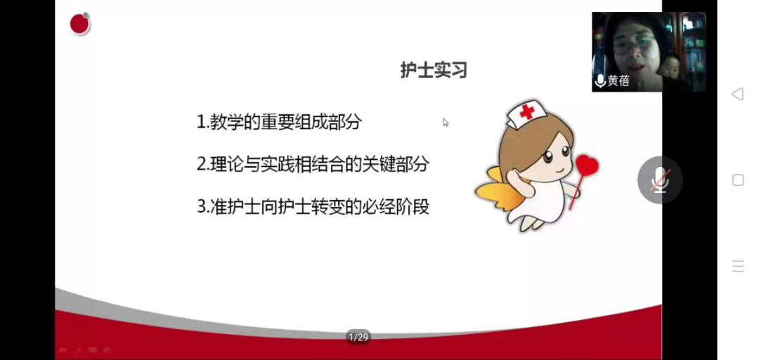 为提高护理专业实习生基本素养及临床服务意识,规范生产实习行为,提升护生对专业的认同感与荣誉感,确保护生顺利完成实践教学学习任务。6月6日下午14时,医学院护理系组织即将深入实习基地的全体学生开展入院前培训,本次培训采取互联网云端方式进行,由护理系副主任金晓娜老师主持,护理系资深教师黄蓓主任医师担任培训讲师,全体实习生参加。